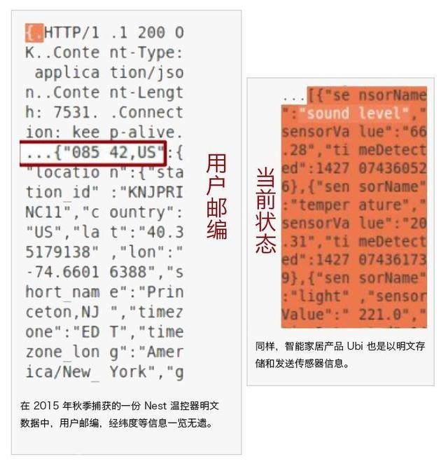 如著名的是谷歌旗下的Nest温控器,将用户的邮编明文收发。(根据Nest后来发表的声明称,这些数据其实是发给了附近的气象站)