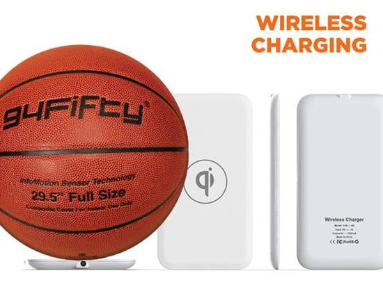 而在充电环节上,94Fifty选择了Qi的无线充电,用户只需要将篮球置于无线充电板上,就可以完成操作。一次充电之后使用时间可以达到8小时左右。