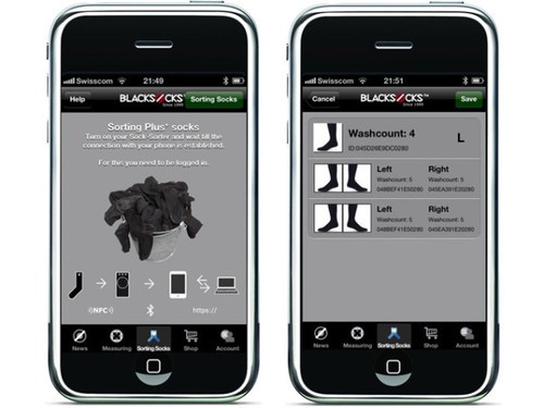 这些智能袜子被命名为Plus+ Socks。当一只袜子被扫描时,它的“平生”就会通过Smarter Socks这个APP一展无遗地暴露在你面前:它多久才被洗一次、它的ID号码、它属于你的左脚还是右脚、它的另一半是谁、它的另一半是否还在、它是用什么材料做成的、它是什么时候被订购的……是不是很智能呢?