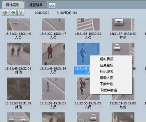 还可以对目标图例或排查结果的类型进行过滤,在目标结果较多的情况下,系统支持将目标中的类型进行分离,进一步缩小关注范围,比如人、颜色等。
