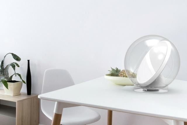 Lucy智能采光镜重量约为2.5kg。整体看上去就是一个直径30cm的透明球体,里面安装了平面镜,光传感器,太阳能电池,以及指示器。配上一个直径18厘米,高3厘米的圆形底座,可以摆放在任何的平面上。正常情况下,平均每个房间,每25平米需要5000流明的光束,而一个LUCY一次可反射7000流明的光线。
