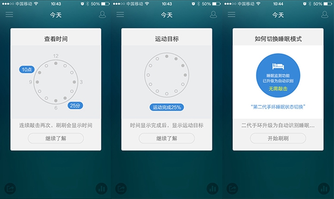 刷刷的人性化不仅体现在App记录上,它还支持睡眠状态的自动监测功能,用户不需要神经质的敲三下或者几下又或者其他的多余操作,告诉手环你要睡觉了。不过这个功能只默认监测夜里,如果你白天睡觉则无法进行监测。