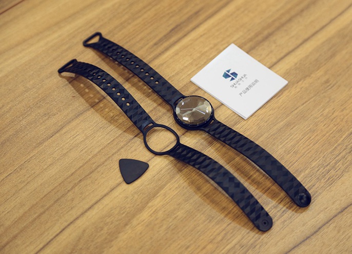 刷刷手环有炫酷黑、宝石蓝、高贵金、三种配色可选。我们今天体验的是高贵金版本。开箱后可以看到,刷刷手环同样采用主体分离式设计,主体部分采用了塑料铝合金材质,不过表面塑料因为启用了宝石样式的切面外观,所以在阳光的照射下看上去质感不禁上升了几个档次。