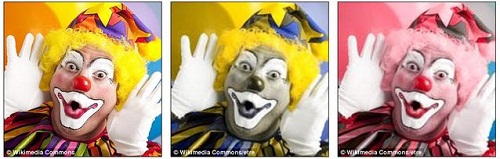 (图4、左中右分别为正常人、红绿色盲、蓝紫色盲看到的颜色)