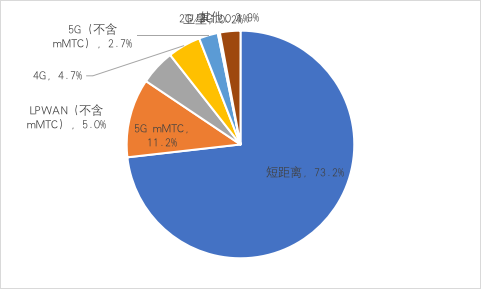 不同的市场研究机构对于物联网连接方式的预测虽然有所差异,但基本都有一个共识,即短距离连接方式占据物联网连接的绝大部分。这一观点在IoT Analytics相关报告中也得到了印证,该机构认为蓝牙、WiFi等短距离物联网连接超过总连接数的70%。由于短距离连接应用范围更广,既包括智能家居、穿戴设备等消费类应用场景,也可以应用于大量企业的场景,且接入便捷,因此其连接规模较大。