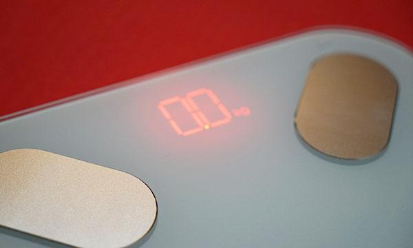 玻璃面板下隐藏着一个LED显示器,只能显示体重,其余数据都要在手机App上查看。