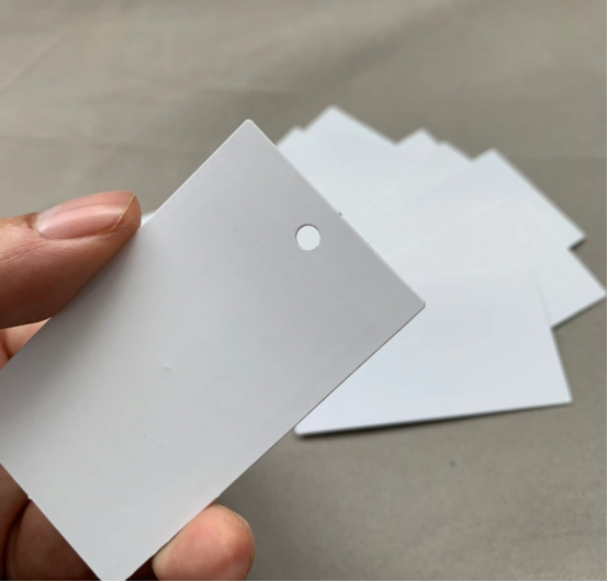 对于采用PVC卡吊牌形式的RFID服装标签,RFID inlay会直接层压在吊牌的中间层,形成一个整体。这种标签可反复擦写,多次回收再利用,有助于降低企业运营成本。
