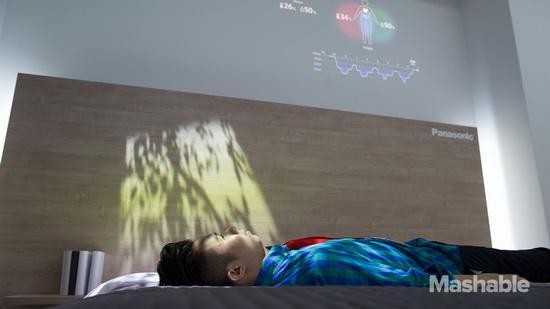 另一款智能设备则是智能床。当用户躺在上面,能够在墙壁上投射出体温、心率、身体水分、睡眠周期等不同体征指数;而根据这些数据,房间传感器可自动调整温度、启动加湿器等设备,实现更舒适、更符合身体需求的睡眠环境。