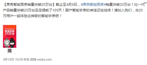 近日,果壳电子在官方微博宣布,其第二代智能手表——果壳智能圆表的销量已经突破了25万台,比其第一代智能手表达到同样销量的时间提前了103天。