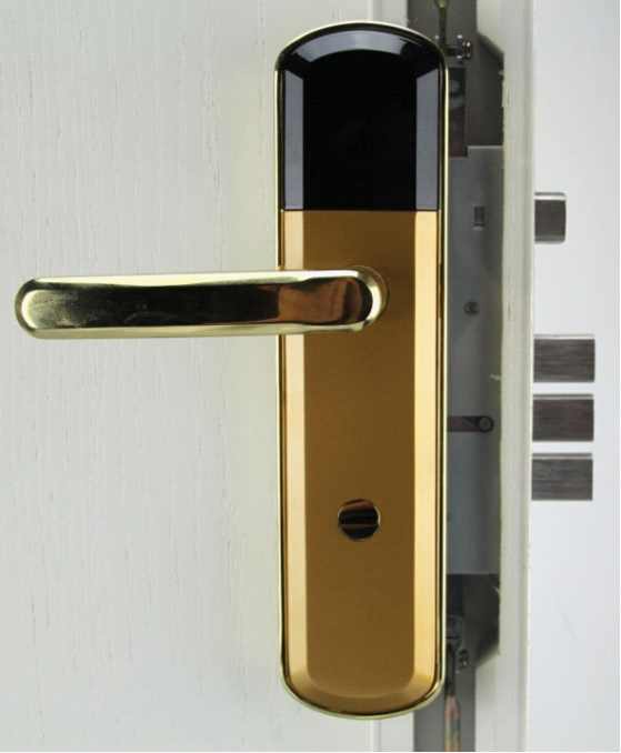 门外锁体和把手采用锌合金材质,外表大部分呈现金黄色,看起来高贵大方,而上边的一部分黑色,又让感觉到这高贵中带有一点神秘感,让人忍不住想去了解它。