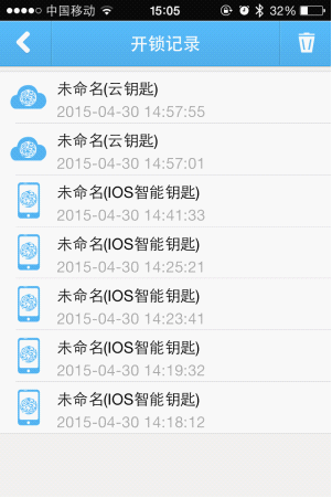 开锁记录按钮里可以看到最近的开锁记录(如下图)。