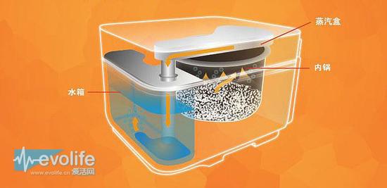 这款TOSOT零蒸汽智能饭煲的特色在于使用了蒸汽储水盒。普通电饭煲在煮饭过程中,由于水分沸腾会产生大量蒸汽而无法充分扩散,所以积蓄在电饭煲内。而TOSOT零蒸汽智能饭煲会将这些水蒸汽通过蒸汽盒导入到水箱,蒸汽在水箱冷却后液化成水,实现零蒸汽排放,避免在开盖过程中发生因蒸汽温度过高而烫伤的情况。