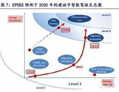 第一阶段体现为主动安全技术阶段,第二阶段实现部分的自动驾驶阶段,最后才逐步普及、迎来完整的无人驾驶体系,也即城市智能驾驶生态圈。在这样的观点下,无人驾驶概念将外延至ADAS、车载传感器等现在拥有发展潜力的存量市场,并会随着技术的推进开启未来增量市场的公司,它们将成为行业发展的优先受益者。