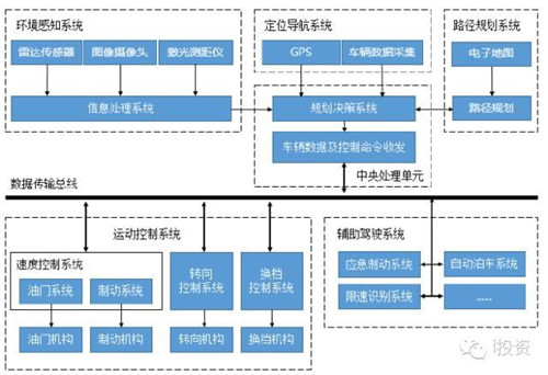 运动控制系统:由速度、转向与档位控制构成,其中档位控制技术发展已较为成熟且投入市场(自动档汽车),未来增量市场主要在速度与转向控制上,也即电控油门、电控刹车与电控转向三大机构。