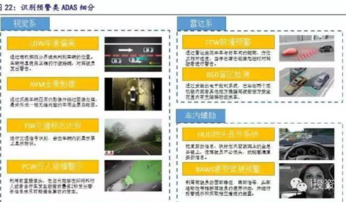 市场预热阶段关键在于技术积累与产品革新,我们判断目前行业有两大发展趋势值得关注:一、现阶段无人驾驶成熟技术的商业化,如ADAS,ADAS 市场渗透率较低,行业发展确定性高、市值空间大。二、关键技术突破及进口替代的过程,布局地图导航系统与传感器等硬件的投资机会。传感器与地图导航作为无人驾驶的核心技术,在我国市场仍没有成熟产品,率先布局实现技术积累或与国际巨头合作的公司将赢得卡位优势。