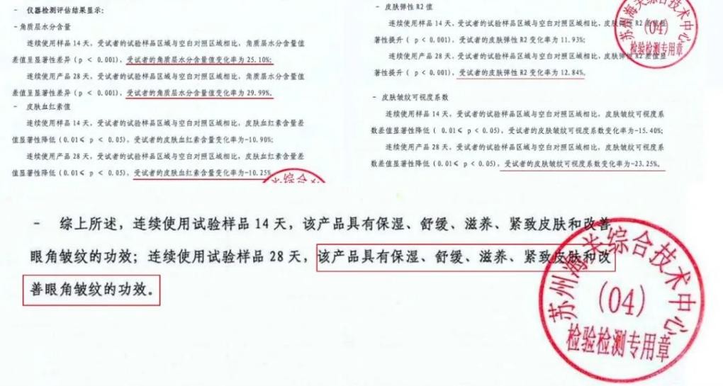 苏州海关综合技术中心的一份检测报告显示(检测受理编号HB202200030),基于32名30-59岁中国女性连续使用4周,每周使用3次后的仪器测试结果,毛戈平奢华鱼子眼膜对改善皮肤状态具有明显功效。