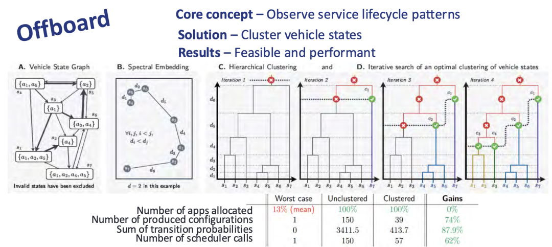 ◎ 其中云端预测性配置利用车辆状态图谱(Vehicle State Graph)和谱聚类算法,将配置方案数量减少74%,调度调用次数降低87.9%,大幅提高了系统的响应速度与资源利用率;