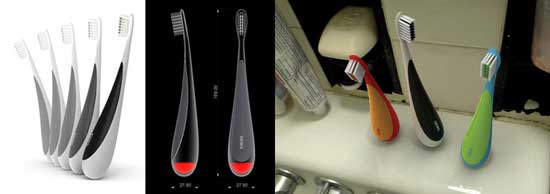 由设计师Hyun Jin Yoon和Eun Hak Lee共同设计的不倒翁牙刷,胖胖的牙刷柄的设计符合人体工程学,使用了和不倒翁一样的原理,牙刷可以随便一搁,不必担心它会倒下而弄脏刷头,干净又卫,看它一摇一摇的乐趣十足。