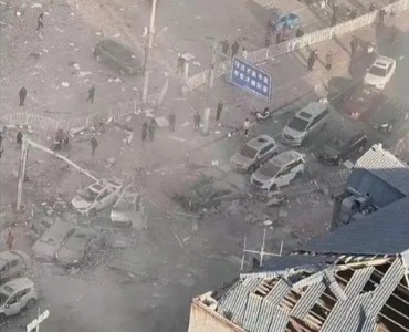 现场的视频显示,爆炸的威力巨大,附近建筑的玻璃被震碎,路面上的多辆汽车也受到了损坏。