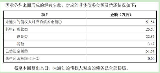 关于未通知全体债权人的原因、未通知的债权人对应的具体债务及其偿还情况,泽润新能表示由于泽润有限2021年反向吸收合并泽润实业时,经办人员基于市场监督主管部门关于反向吸收合并办理工商登记的资料要求,误认为通知债权人和登报公告两种通知债权人的方式选择其一即可,因此未一一通知全体债权人,并公布了吸收合并时泽润实业未通知的债权人对应债务主要系材料及设备类供应商因业务往来而形成的经营欠款。