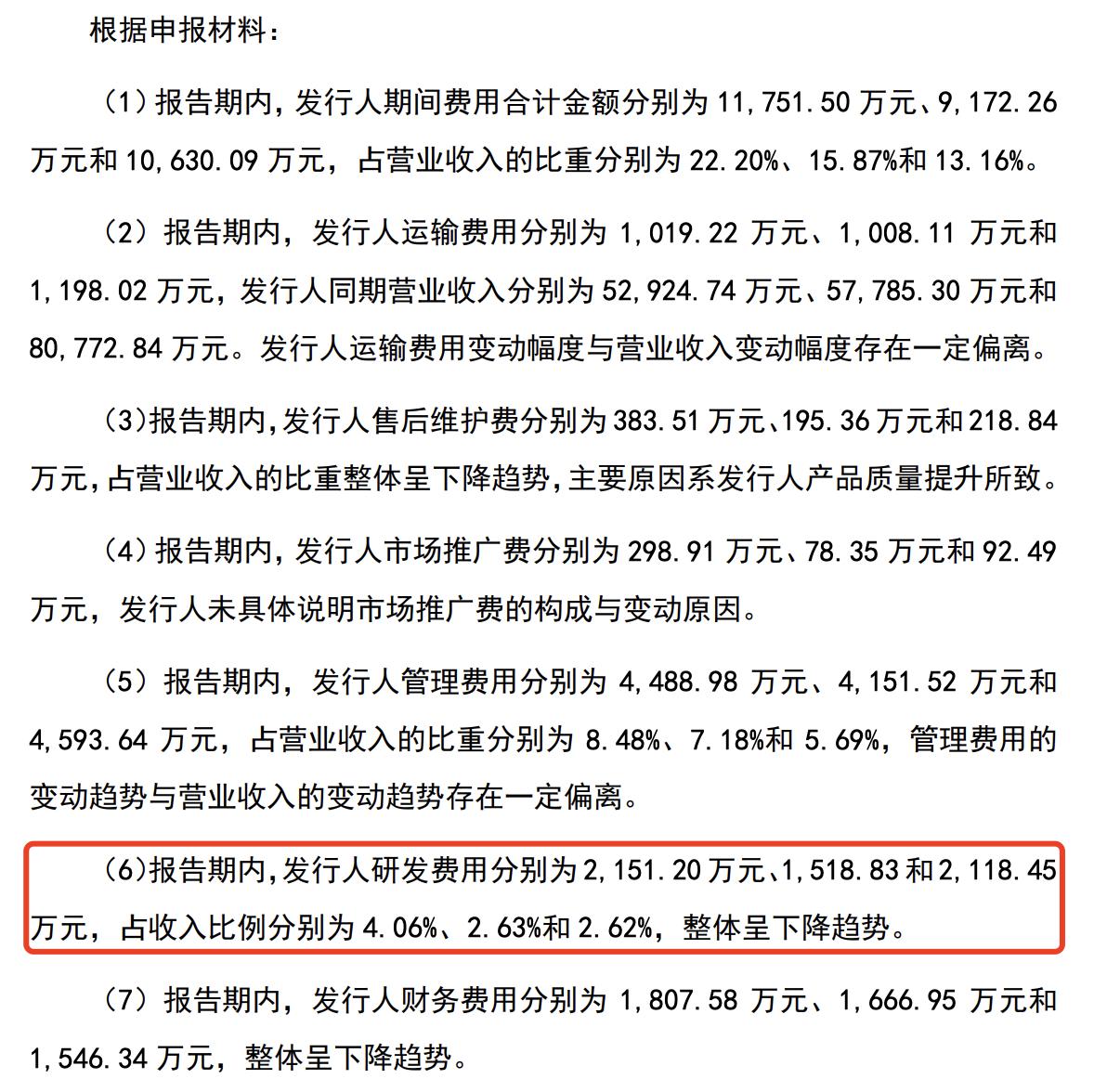 事实上,深圳证券交易所在第一轮问询函中指出,华业塑料的研发费用率整体呈下降趋势。对此,要求该公司说明研发费用与其他成本、费用划分的标准和依据,报告期内研发费用占收入比例逐年下降的合理性,与公司研发项目是否匹配等。