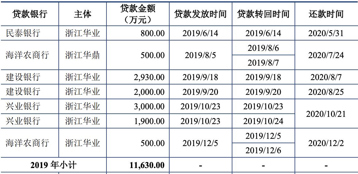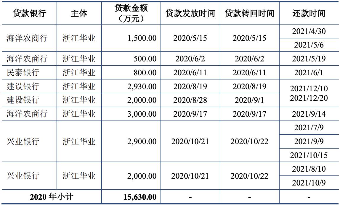 不过,华业塑料历史上的财务内控存在瑕疵。根据申报材料,2019年及2020年,该公司存在以向舟山市海明特殊钢有限公司采购的名义进行转贷的行为,共发生15笔,发生金额27260万元(约2.7亿元)。