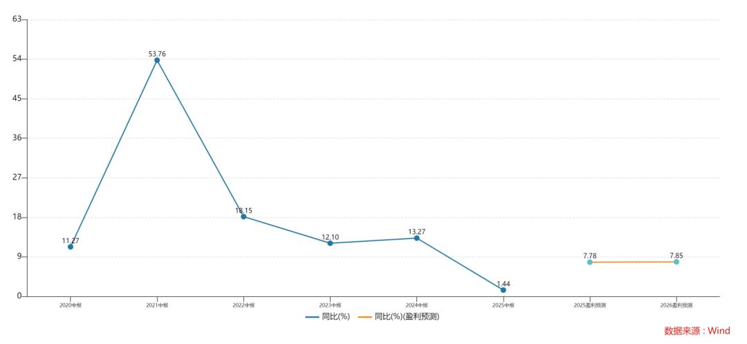 利润方面,今年上半年,公司实现归母净利润20.77亿元,同比增长3.01%,而该增速,创下了近三年的中报利润增速低点。