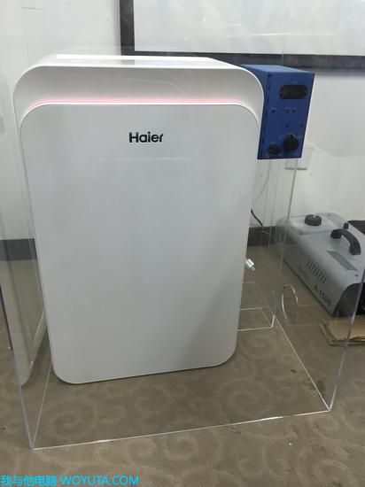 现场进行了“密闭透明空间”海尔除醛机实际效果测试。通过向空间内注入含甲醛烟雾,甲醛测试仪和海尔智能除醛机传感器第一时间检测到了空间内空气的变化,甲醛测试仪实时显示着当前空气中的甲醛含量,而海尔智能除醛机在前置面板设有的空气质量指示灯,也是由开启状态的绿色变为红色,随着除醛功能的运行,变成橙色,然后变为黄绿色,最终达到空气健康状态下的绿色。
