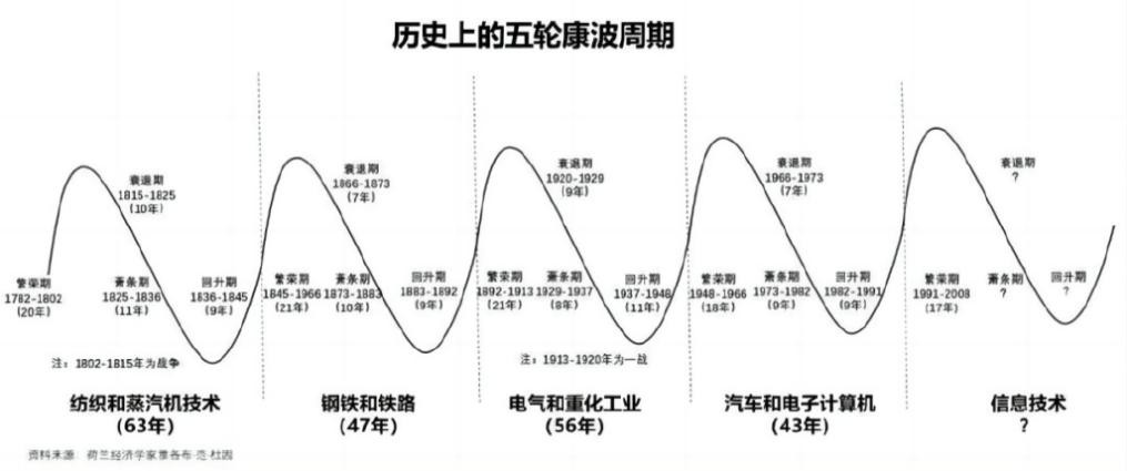 经济学家尼古拉·康德拉季耶夫曾提出一个著名理论——康波周期,其中包含繁荣、衰退、萧条和回升四个阶段。据悉,新一轮康波周期的开启往往与重大技术创新密切相关。