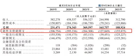 研发之外,由于需要持续拓展新客户,销售费用也通常较高。比如,北森每年的销售及分销成本在2亿元左右;2021财年销售及营销开支占到总收入的51.10%。