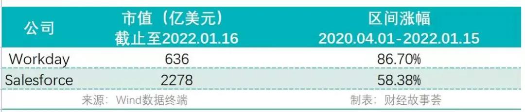 人力资源SaaS,是资本市场特别偏爱的赛道:截止至1月16日,尚未实现盈利的Workday市值为636亿美元;股价一骑绝尘,从2020年4月至今,涨幅接近位86.7%,上涨幅度,比已经实现盈利的Salesforce还高了接近30%。