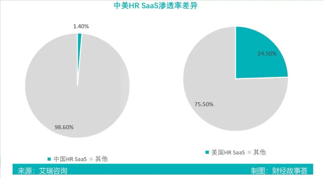 不妨对比下美国的HR SaaS市场,后者占据的市场份额已经高达24.5%。假如中国市场人力资源市场的SaaS渗透率比肩美国成熟市场,国内HR SaaS规模还有接近20倍的上行空间。