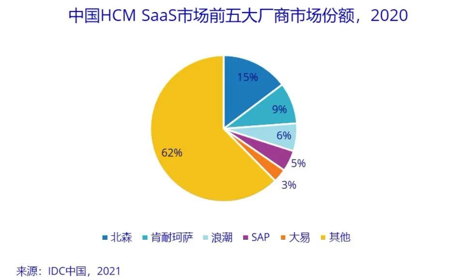 这一赛道前景可观,且行业进入门槛看似较低,因此,HR SaaS行业的竞争相对激烈,市场格局比较分散。