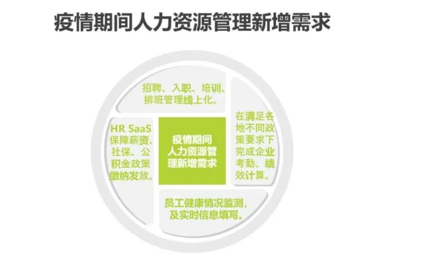 其二,短期受疫情冲击波影响,HR职能部门的防疫任务和在线化诉求也在大幅增加,体现为在线满足远程办公考勤、在线全流程招聘等等。