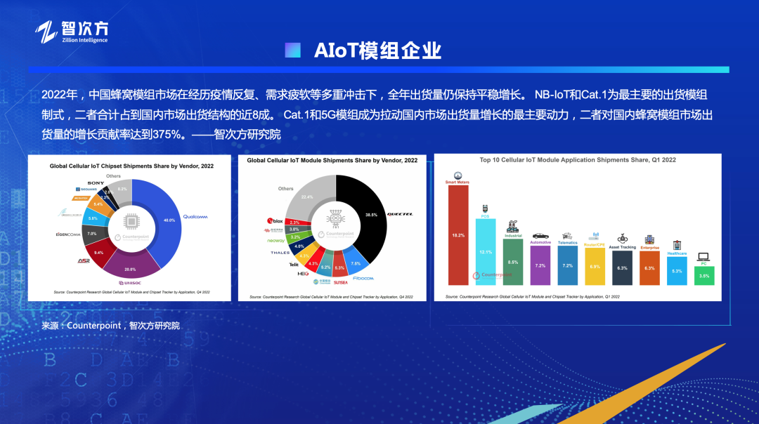 从市场研究机构Counterpoint的统计数据中,可以看到中国通信模组企业继续通冠全球,移远通信稳居第一,广和通、日海智能、中国移动、美格智能等,也都有不俗的表现。