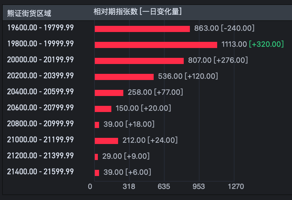 恒指当前处在一个相当微妙的状态,距离20000点整数点位越来越近,市场也倾向于谨慎,但只要成交额和流动性有所保证,那长线看涨的逻辑仍然不变。通过恒指的牛熊街货分布,我们可以看出,20600下方堆积了大量的熊证,股指只要能保持上攻形态,这些熊证被杀的概率将会相当大。