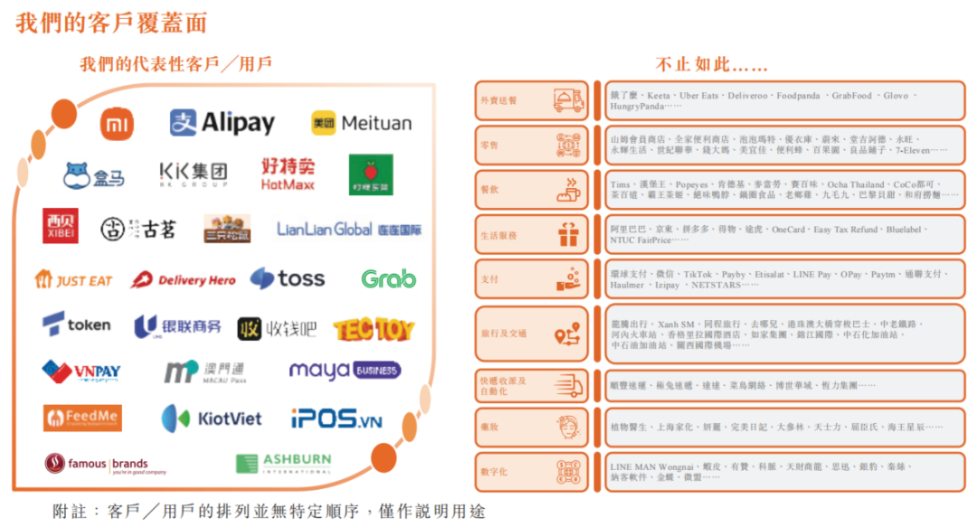 根据灼识咨询的资料,公司已服务全球前50大食品及饮料企业中逾70%的企业。在中国,公司已实现超过70%的餐饮百强品牌覆盖率及超过60%的百强连锁商店覆盖率。