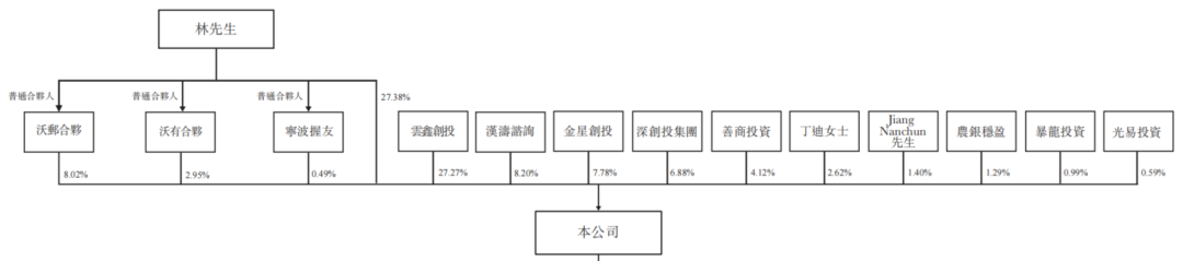 云鑫创投(蚂蚁集团),持股27.27%,拥有7.87%的投票权;汉涛咨询(美团),持股8.20%,拥有2.37%的投票权;金星创投(小米),持股7.78%,拥有2.25%的投票权;深创投,持股6.88%,拥有1.99%的投票权;善商投资,持股4.12%,拥有1.19%的投票权。