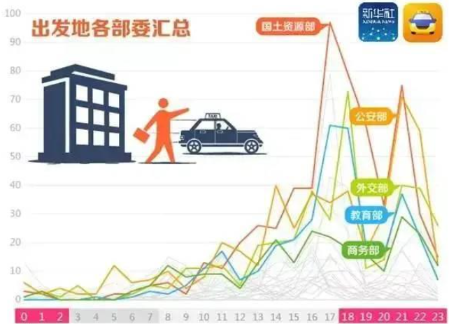 该报告中,滴滴研究院通过对实时生成的移动出行大数据进行分析,通过数据图表详细描绘了一天内国家各部委的出行信息,包括公安部、外交部、教育部、商务部、新华社、发改委、国土资源部、交通运输部、住房城乡建设部、农业部、中纪委、监察部、工信部、中国人民银行、环境保护部、民政部、水利部、商务部、财政部、司法部、人社部、卫健委、审计署等等。