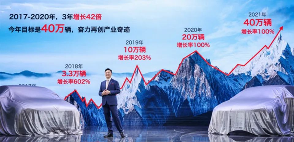 2019年,红旗年销量突破10万辆大关,同比增长203%;2020年,红旗品牌累计销量已经突破20万辆,又提前完成销量目标;2021年,红旗品牌虽然未完成40万辆的既定增长目标,但也成功达到30万辆的销量。