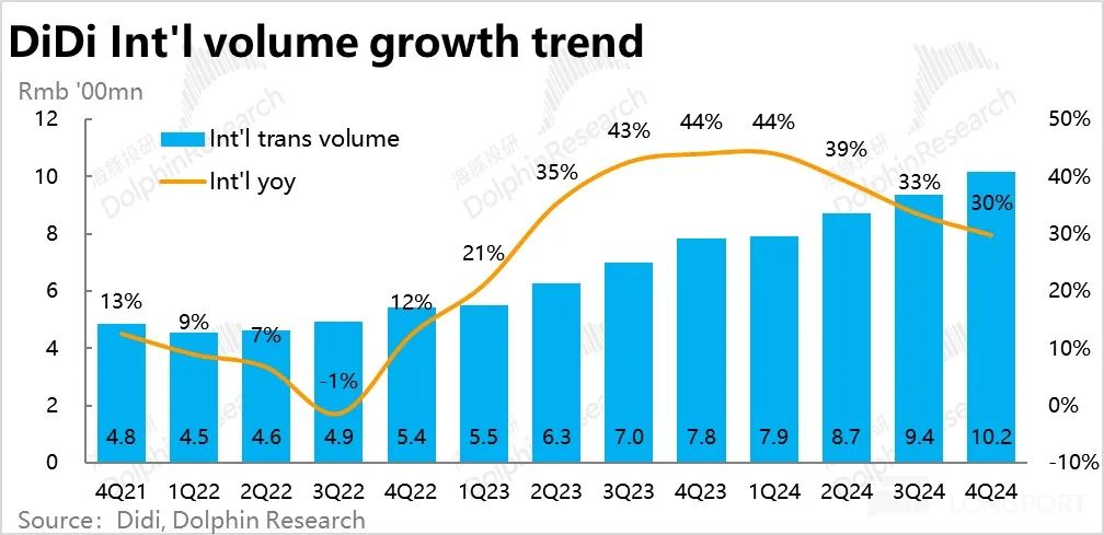 环比角度,本季国内 GTV 增长了 0.3%,历史上 4Q 相比 3Q 是相对淡季,本季度逆势环增是 2021 年以来的首次,也体现出滴滴在国内市场领先地位的提升。