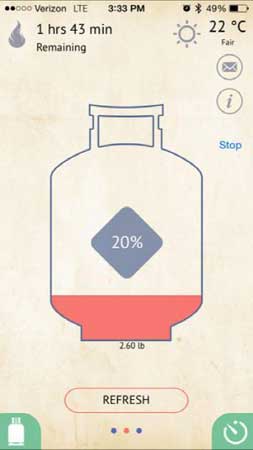 虽然之前GasWatch已经存在,但是当时并不支持连接智能手机。而现在出现在Indiegogo上最新版本增加了通过蓝牙对App的支持,在整个过程中实时监控,如果剩余燃气量不足20%,那么App就会自动发出提醒,非常方便。此外,App还能记录上一次剩余燃气量的多少,如果想要重新开始一次,我们可以查看App来确定剩余的用量是否能够满足这一次的需求。