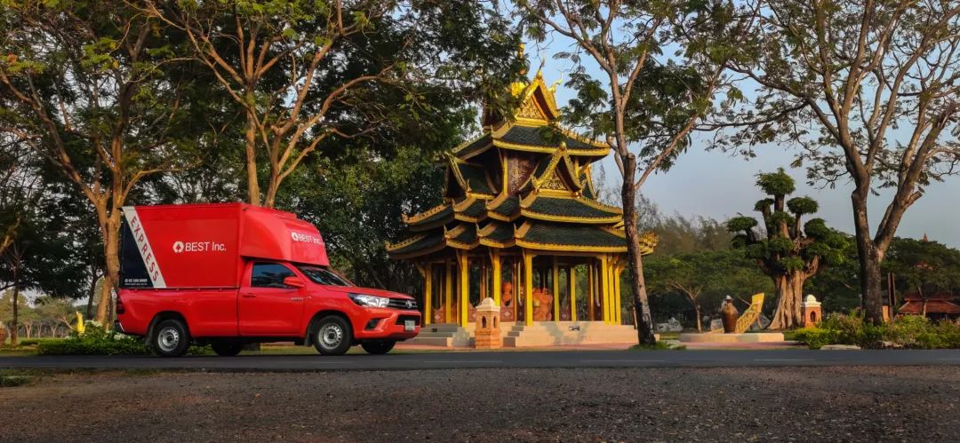 泰国道路上百世的快递派送车