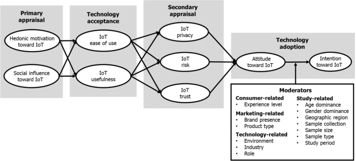 这一阶段根据技术的易用性和实用性来评估物联网产品接受度,这种评估在塑造消费者对物联网的态度方面发挥着至关重要的作用,并且有助于确定他们尽管存在潜在挑战和担忧,但仍愿意采用此类技术。