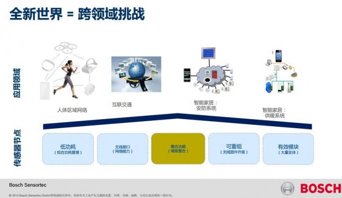 “物联网”的核心不是“网”,而是“物”。即所有的“物”,都被重新定义了,成为具有智能元素的“智能产品”。Bosch Sensortec市场与业务发展总监严更真先生认为,传感器对行业的创新应该有四大因素:传感器的硬件、传感器的软件、传感器针对行业的定制和优化以及利用传感器进行创新的思维。他表示:“现在中国市场上,并不缺全球最好的传感器,如何利用最好的传感器来快速创新,才是实现产业升级最有效的的方式。”