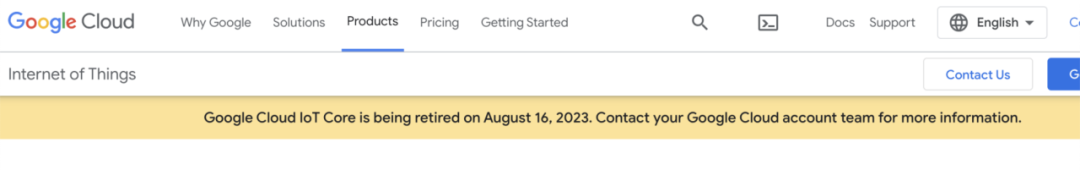 最近遇到挫折的谷歌云,宣布其IoT Core将于2023年8月16日退役。