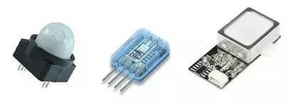 由左至右依序是 PIR(人体红外)模块 , 温湿度模块, 指纹辨识模块