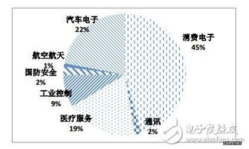 按照应用市场,物联网产业可划分为 智能工业 、 智能农业 、 智能物流 、 智能环保 、 智能交通 、智能电网、 智能医疗 、智能安防、特种装备、 智慧城市 、智能家居等。Yole Developpement 数据显示,传感器中占比最大的是消费类应用,其规模达到 59 亿美元,占传感器产品市场的 45%,到 2019 年预计将超过 100 亿美元,年复合增长率约 11.2%。而成长最快的医疗服务市场,将从 2014 年4的24.5 亿美元增长至2019 年的72亿美元左右,年复合增长率近 30%。