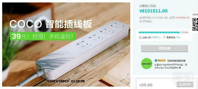 最近,ORVIBO欧瑞博和秋叶原合作的COCO智能插线板在阿里众筹获得800万多元众筹,支持者多达7.5万人,刷新了淘宝众筹的多项纪录。