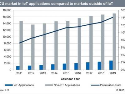 根据市场研究公司IHS表示,针对连网汽车、可穿戴电子设备、建筑物自动化以及其他有关物联网(IoT)应用的全球微控制器(MCU)市场预计将以11%的复合年成长率(CAGR)成长,从2014年的17亿美元增加到2019年时达到28亿美元的市场规模。